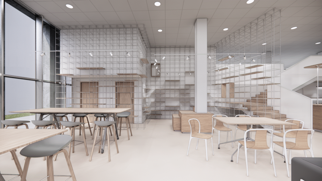 Un niveau de rendu réaliste et détaillé intégrant la signalétique, les éléments techniques (BAES, aéraulique), un texturing avancé (reliefs, matières, effets de surface), une modélisation fidèle du mobilier selon APS/APD, ainsi qu’une accessoirisation soignée incluant végétation et personnages réalistes pour une immersion maximale